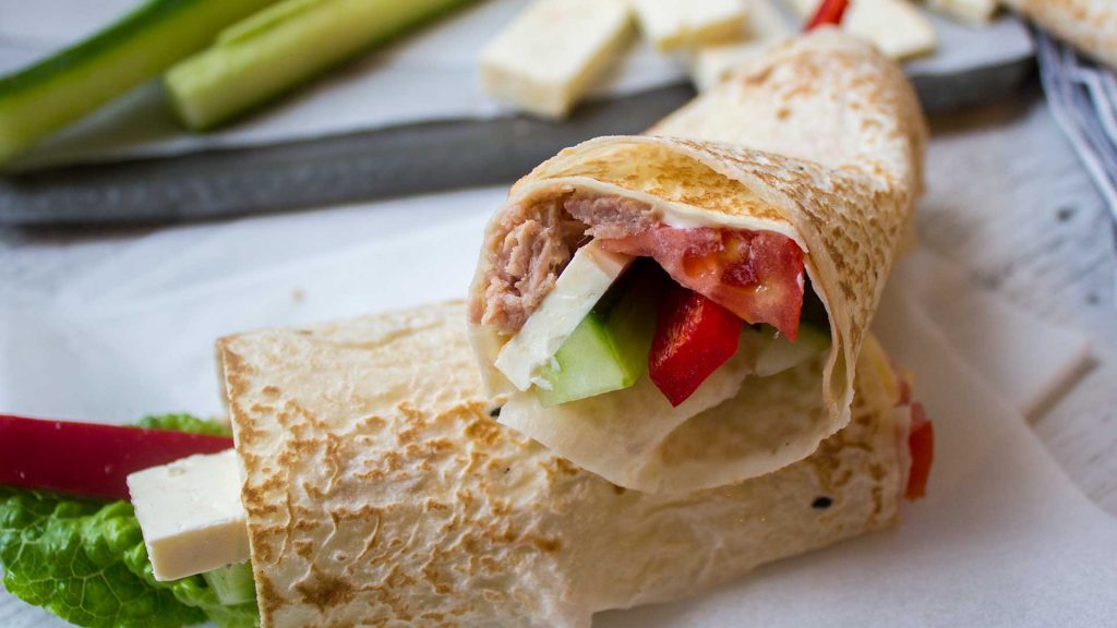 Cheese adds more protein to this meal as well as calcium needed for strong bones and teeth. Salmon is a source of vitamin D which is the key for calcium to be absorbed properly in your body. So, this wrap combination is perfect. The whole grain wrap makes this lunch perfect by providing your body with more fibre and micronutrients than refined wrap varieties.