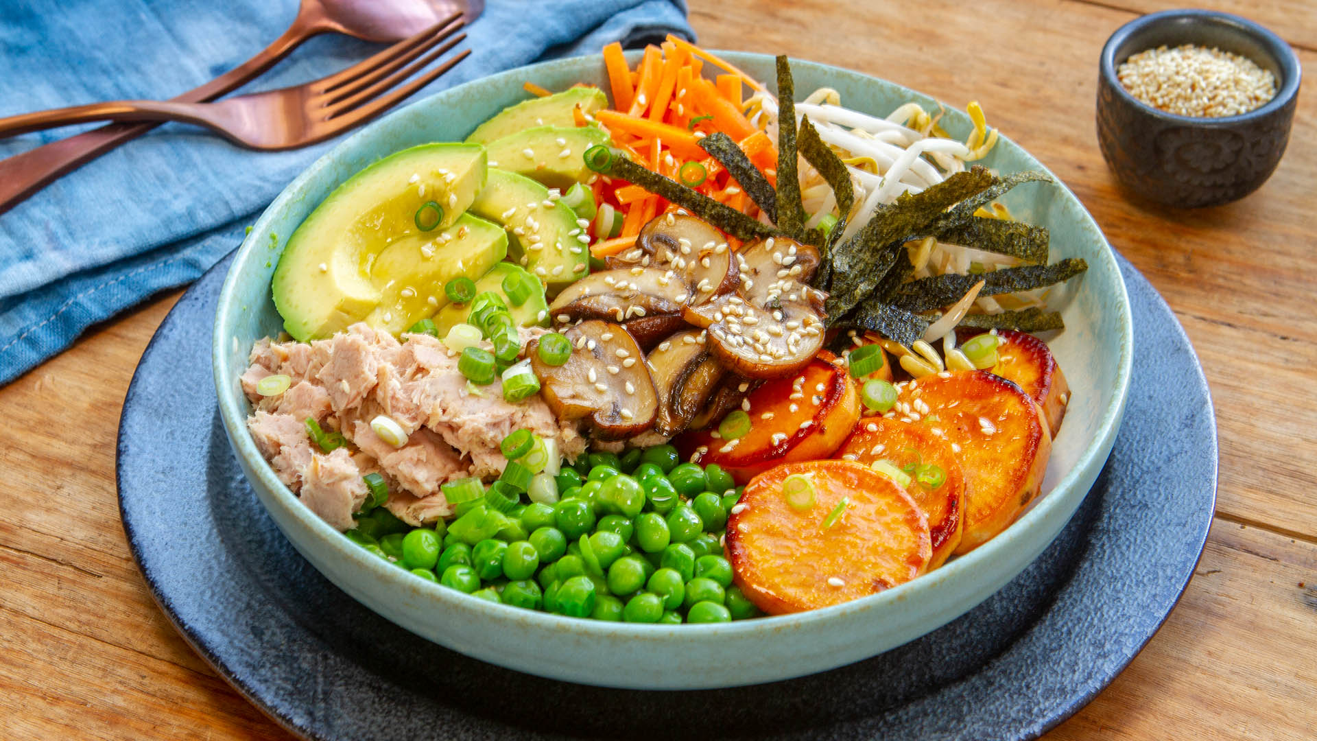 Roast using 80g of chicken breast with 1 cup of cooked roast vegetables and 1 medium sweet potato. Enjoy one slice of whole-grain bread with 2 teaspoons of extra virgin olive oil on top. Herbs and spices over sauces are recommended as a method to increase the antioxidants your body will receive and reduce the added sugar and salt in the sauce.