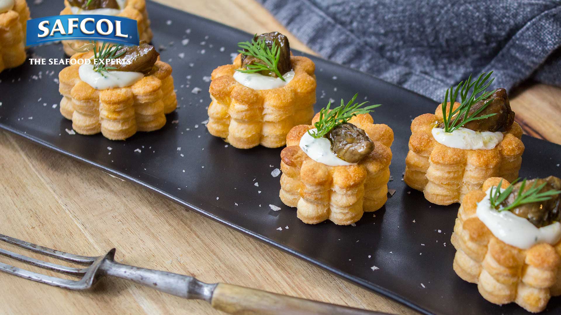 - Using teaspoons place a small amount of the mashed oyster and lemon in the bottom of each vol au vents case. Top with the sour cream mixture. Finish each vol au vent with a whole smoked oyster and a frond of dill. Scatter with a little freshly cracked pepper and serve immediately chilled.