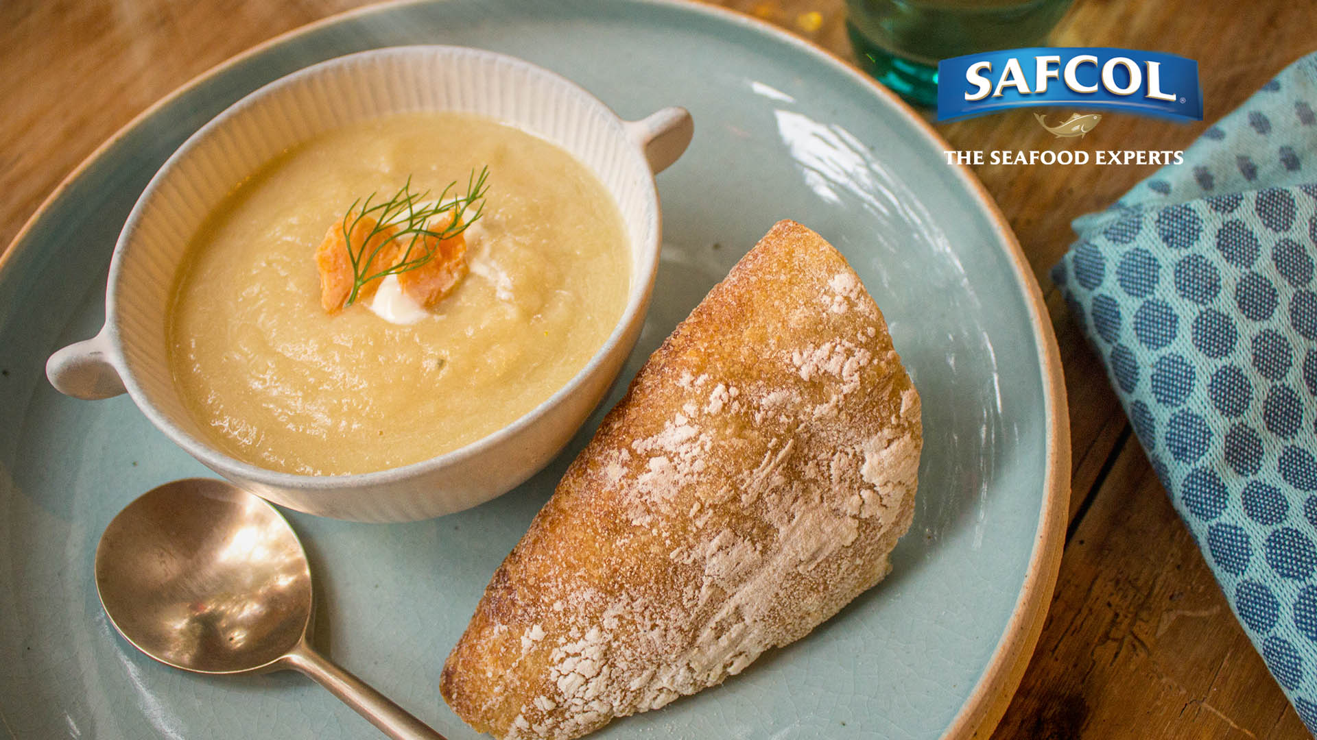 This celeriac soup is tasty. The quality Safcol Premium Smoked Salmon provides delicious flavour as well as giving your body a healthy dose of protein and fat. The type of fat in salmon called omega 3 fat is polyunsaturated fat and is essential to include in your diet. Your body does not make this fat and requires it for healthy brain, heart, and artery function. The type of omega 3 fat found in seafood is better absorbed by your body than plant varieties which only convert around 1% to the type your body can use.