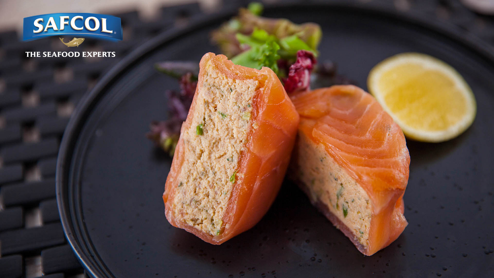 - Fill the moulds with the trout mixture and then gather the smoked salmon/trout from the sides to the centre, to cover the mixture. Cover with the excess cling wrap and press down to compact. Place in the fridge, for at least 3 hours or overnight.