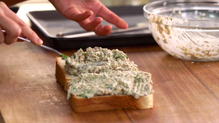 - Combine the sardine mixture together to form a paste. Spread onto bread evenly and ensure it covers all the way to the edges. Trim off crusts and cut into quarters.