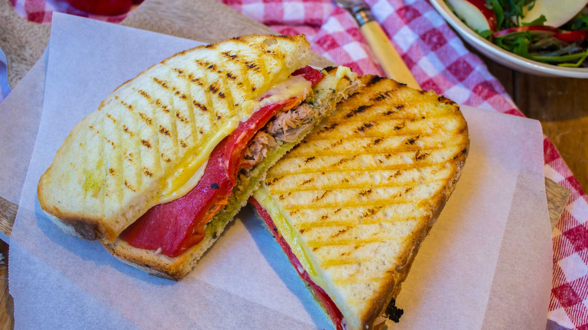 Tuna cheddar capsicum panini melts