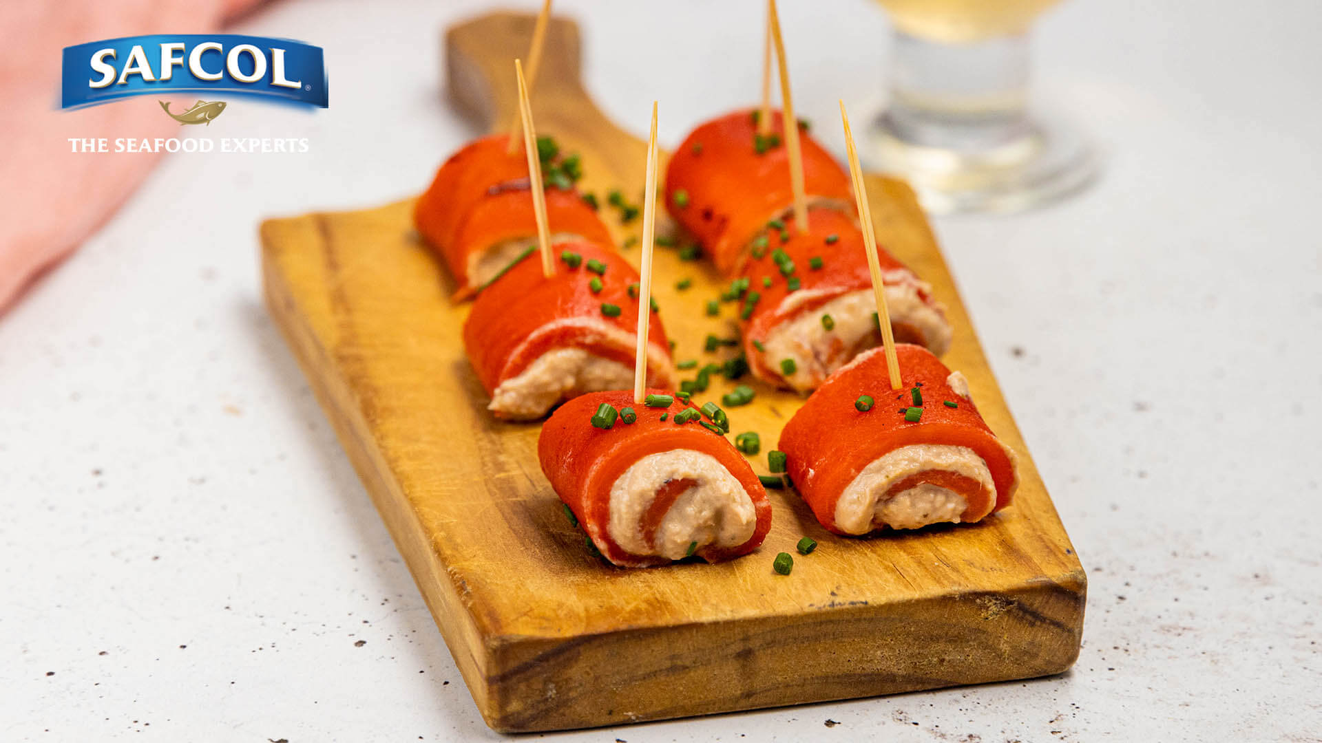 - Lay the strips of capsicum on a clean surface and add a teaspoon of the mixture to one side. Roll the capsicum over the tuna hommus and keep rolling to form a cylinder. Repeat with the remaining.