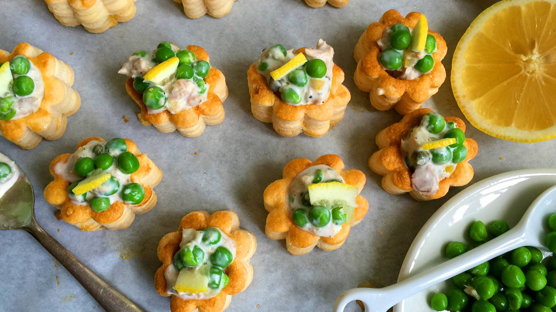 Tuna pea caper and lemon vol au vents